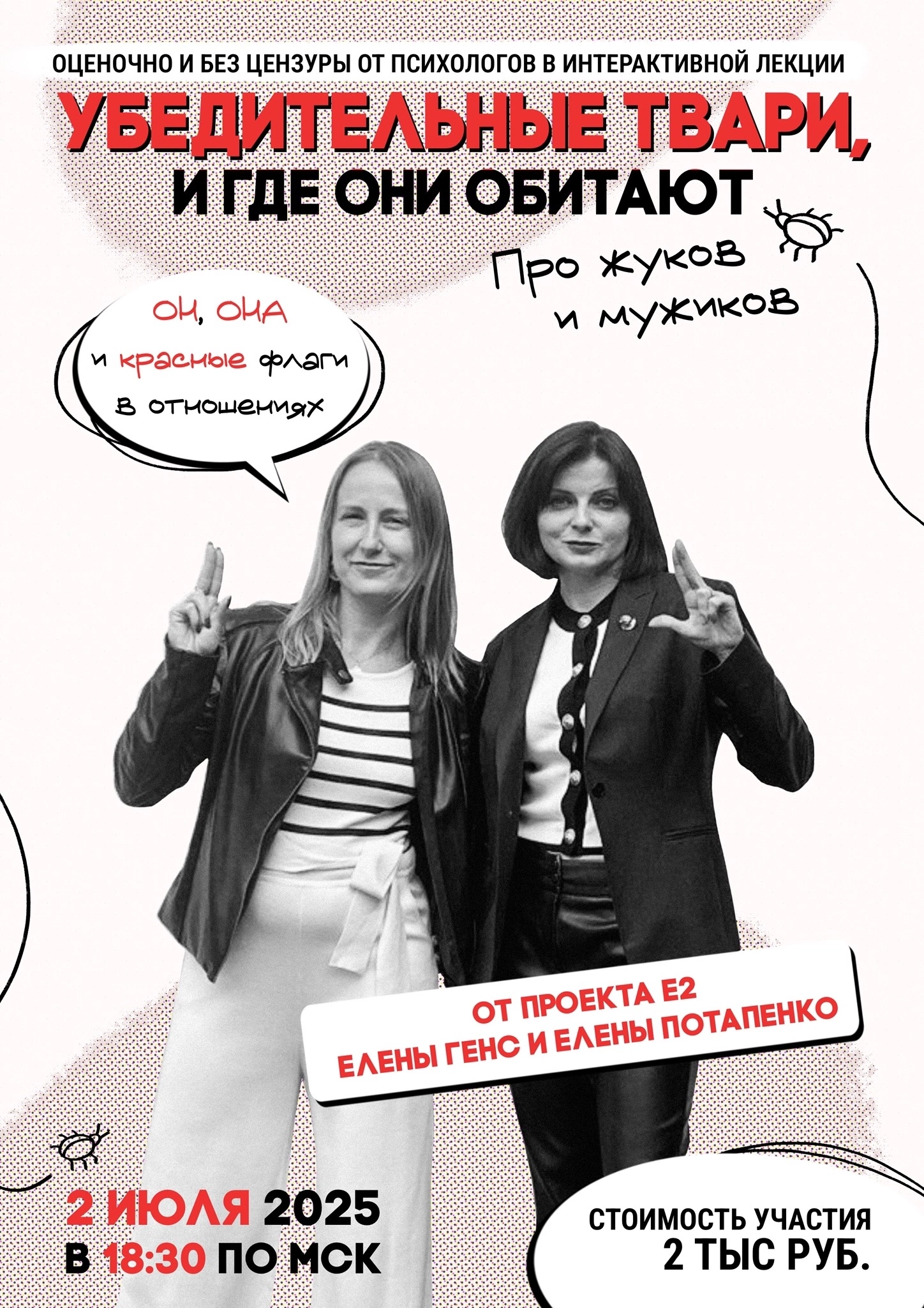 Оценочно и без цензуры от психологов в интерактивной лекции Про жуков и мужиков! Он, Она и красные флаги в отношениях!